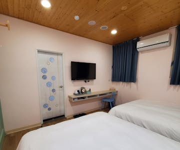 - ✅加大被 / 43吋液晶電視及機上盒 /國際牌1200w強力吹風機 /獨立冷暖空調 /室內拖鞋。