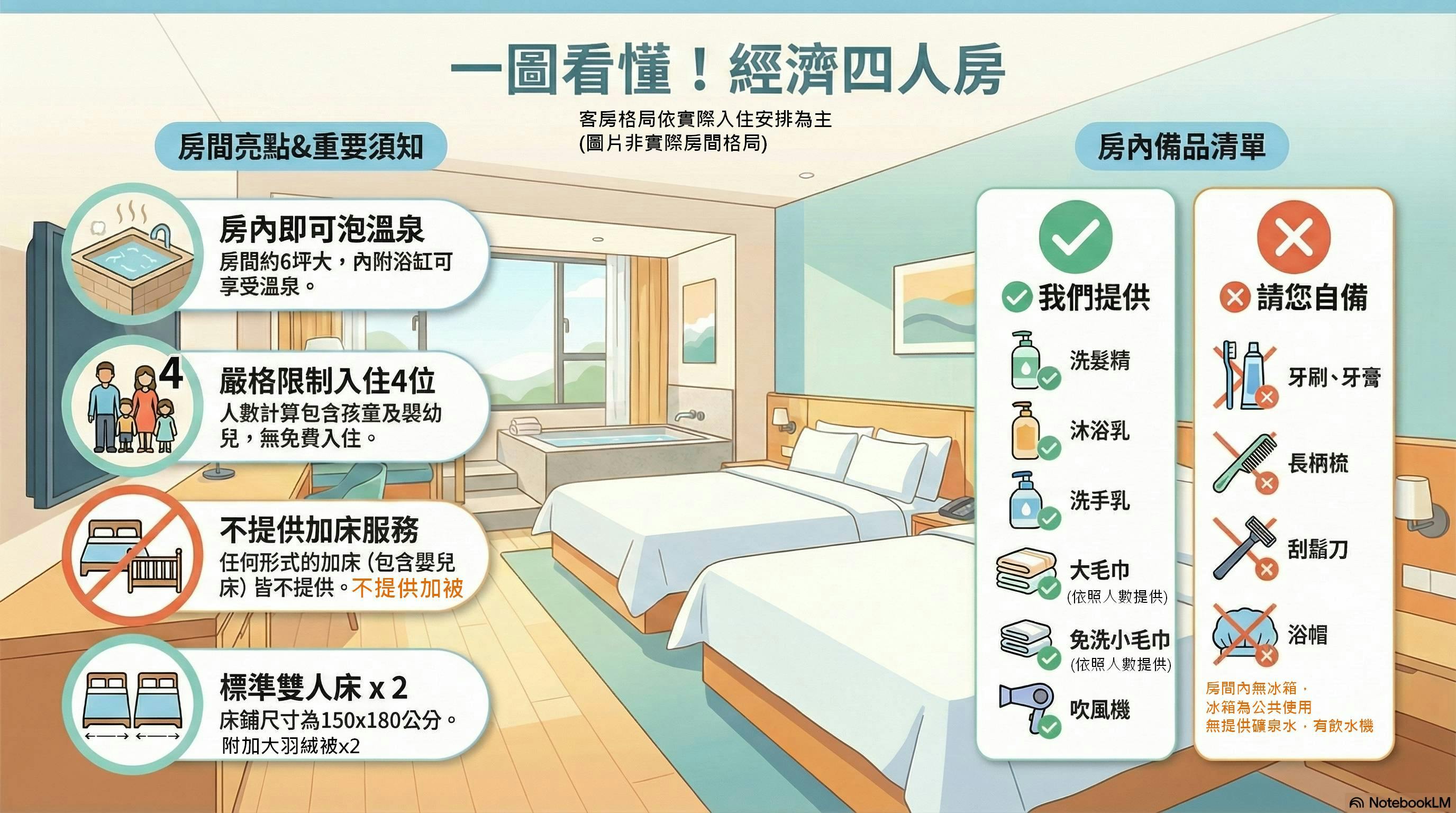 - 入住人數限四位(包括孩童及嬰幼兒)